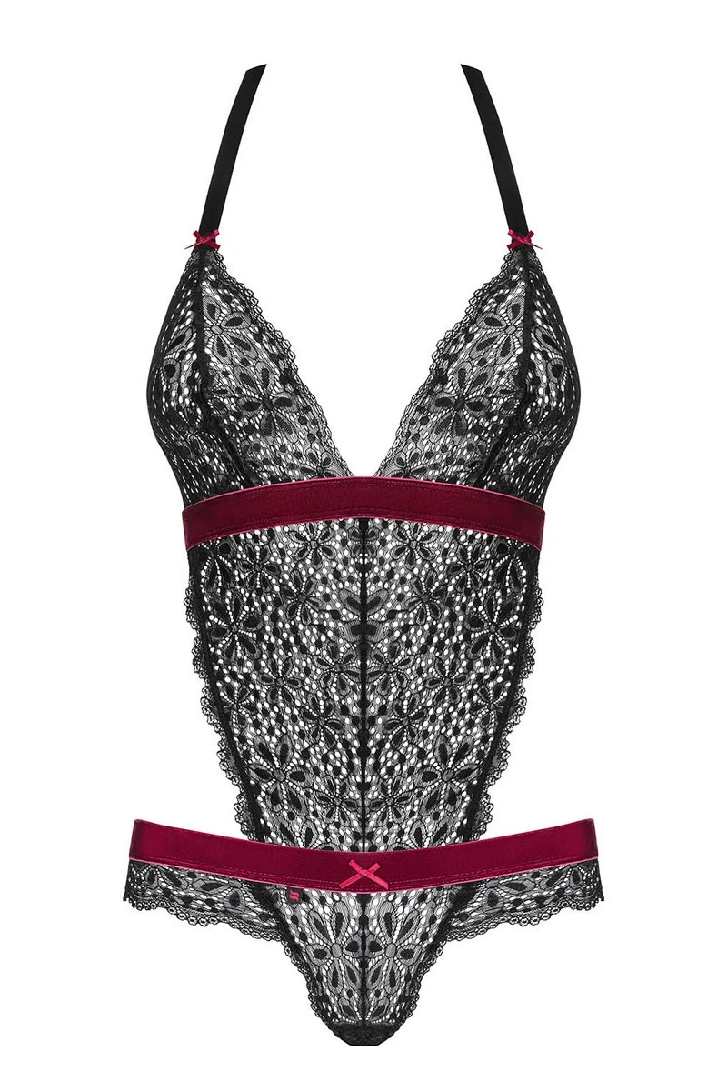 Cette lingerie est un véritable délice à regarder ; le body dentelle Rossita reprend sa fabuleuse dentelle micro-perforée dans un body à couper le souffle. Son aspect chic est rehaussé par des bandes satinées qui parcourent la tenue en soulignant la poitrine et la taille. Ils feront aussi office de bretelles à nouer derrière la nuque afin d’ajuster le bodie à votre taille.