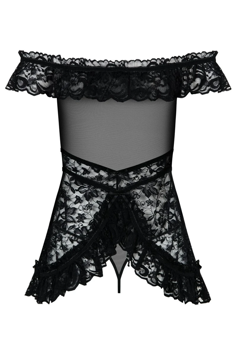 La nuisette Flores est idéale pour passer de bons moments romantiques. Ses bretelles sont faites de dentelle finement élastique afin de pouvoir ajuster la lingerie à votre corps comme vous le souhaitez. La matière transparente sur la poitrine révélera les courbes féminines avec charme.