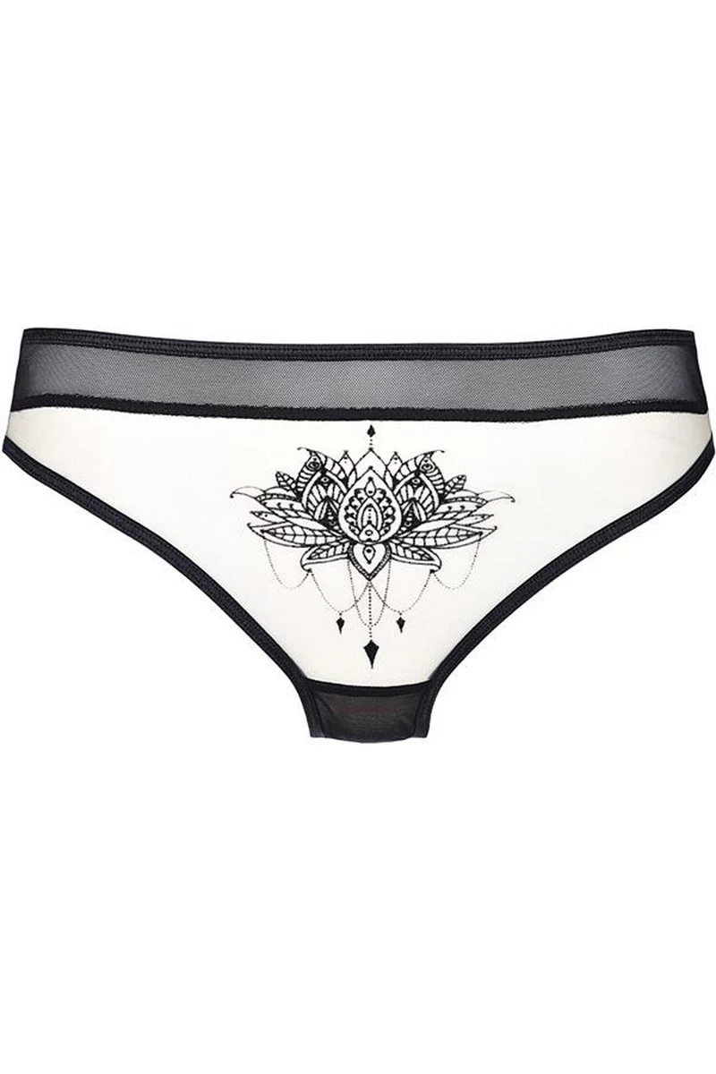 Osez la transparence du BrĂ©silien V-9035 d’Axami pour jouer de vos charmes fĂ©minins. Offerte par un lĂ©ger tulle couleur peau, cette faible opacitĂ© aura pour effet de tatouer sur votre peau le motif arabesque prĂ©sent en son centre. La taille est doublĂ©e pour reprendre un contraste plus foncĂ© tandis qu’au dos, les fesses profitent d’une Ă©chancrure qu’on adorerea.