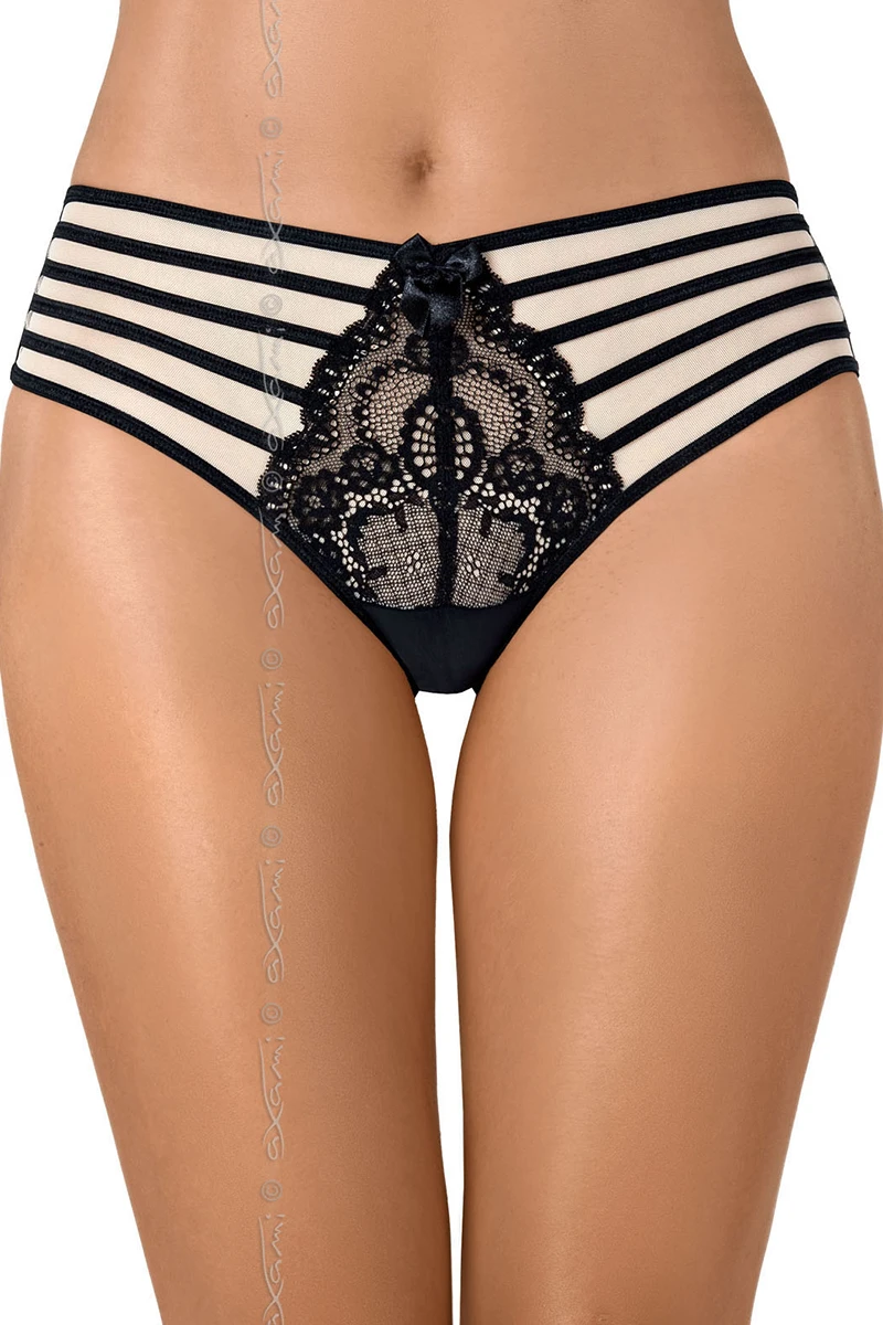 La culotte V-8033 est faite pour se combiner au soutien-gorge V-8033 assorti. Son allure fĂ©minine est due Ă sa dentelle florale, fiĂšrement arborĂ©e en son centre. Les liens qui ornent les hanches suivent les lignes de la silhouette et viennent crĂ©er une illusion allant de simples rayures a l’effet tissĂ© telle une toile. Les fesses profitent d’une Ă©chancrure classique créée par une matiĂšre opaque et douce sur la peau. Existe en string.