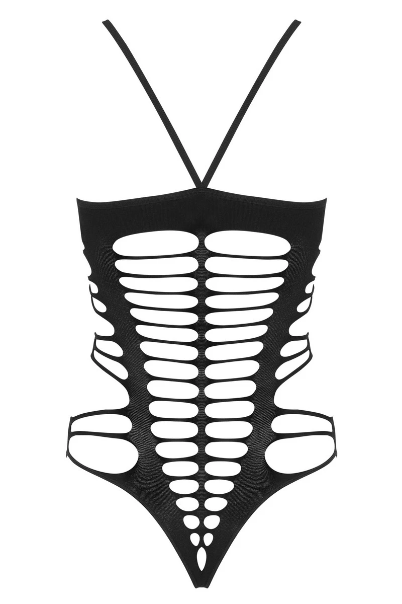 Le body coquin B122 est envahit de liens qui parcourent le corps avec assiduité. Sa coupe reste échancrée afin de mettre les lignes et atouts du corps féminin sur le devant de la scÚne. Les zones foncées sont opaques afin de faire ressortir les ouvertures qui sont nombreuses sur cette lingerie de charme.